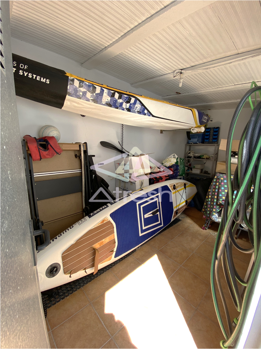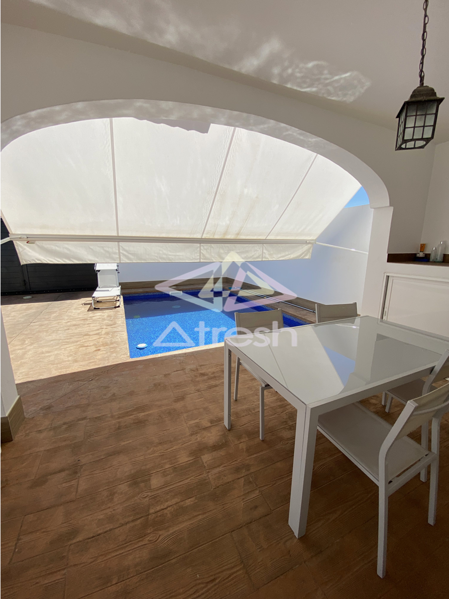En la terraza encontrarás una cochera, piscina privada, dos cuartillos para almacenamiento y un aseo exterior que complementa el área de la piscina.